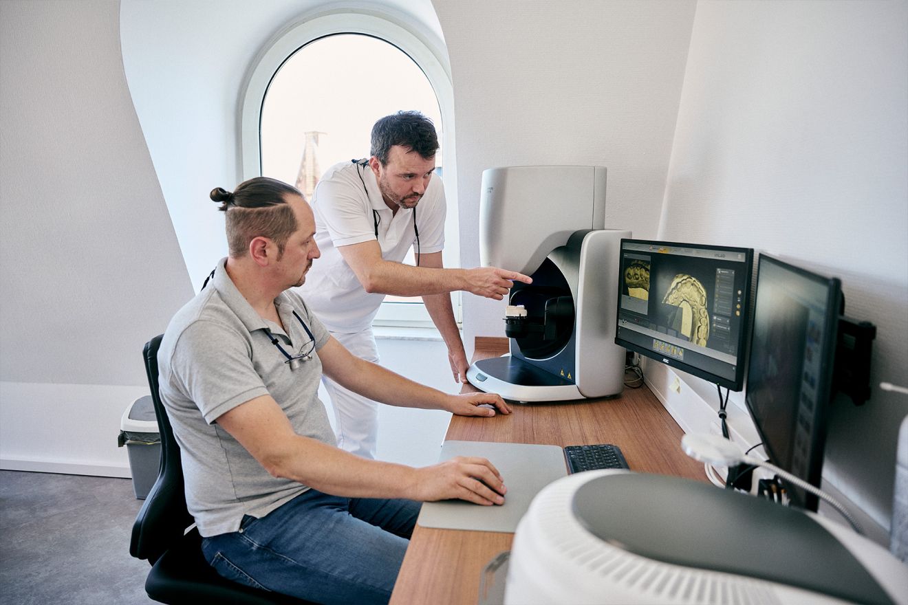 Durch unser hauseigenes Praxislabor können wir einen engen fachlichen Austausch mit unserem Zahntechniker gewährleisten und somit das für unsere Patienten beste Ergebnis erzielen.